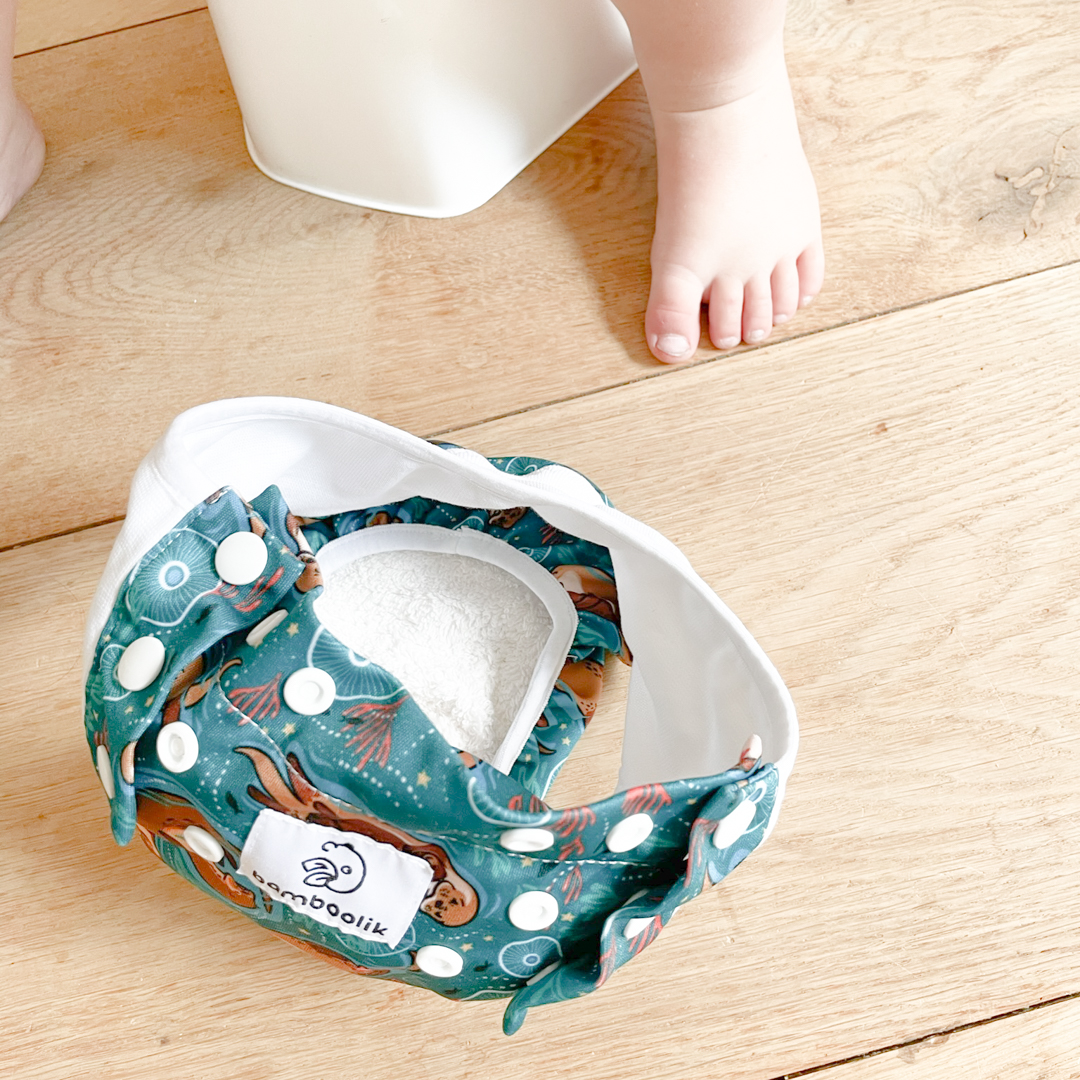Als je kindje toch te laat is met naar het potje of de wc gaan, dan hoef je niet de broek en schoenen uit te trekken. Je kunt het zindelijkheidsbroekje namelijk heel eenvoudig los klikken door middel van drukknoopjes. Verwissel vervolgens de absorberende inlegger, het waterdichte broekje kun je vast nog een keer gebruiken.