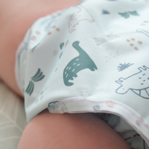 Deze wasbare luier, Popolini MiniSnap, sluit je drukknopen en daaroverheen gaat het overbroekje, de PopoWrap, dat je sluit met klittenband.